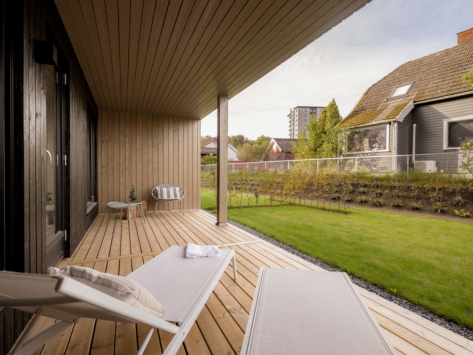 Nyoppført og meget innholdsrik bolig med tre store uteplasser og garasje. Her bor du stille, solrikt og sentralt på Vestsiden. Ta kontakt for visning!